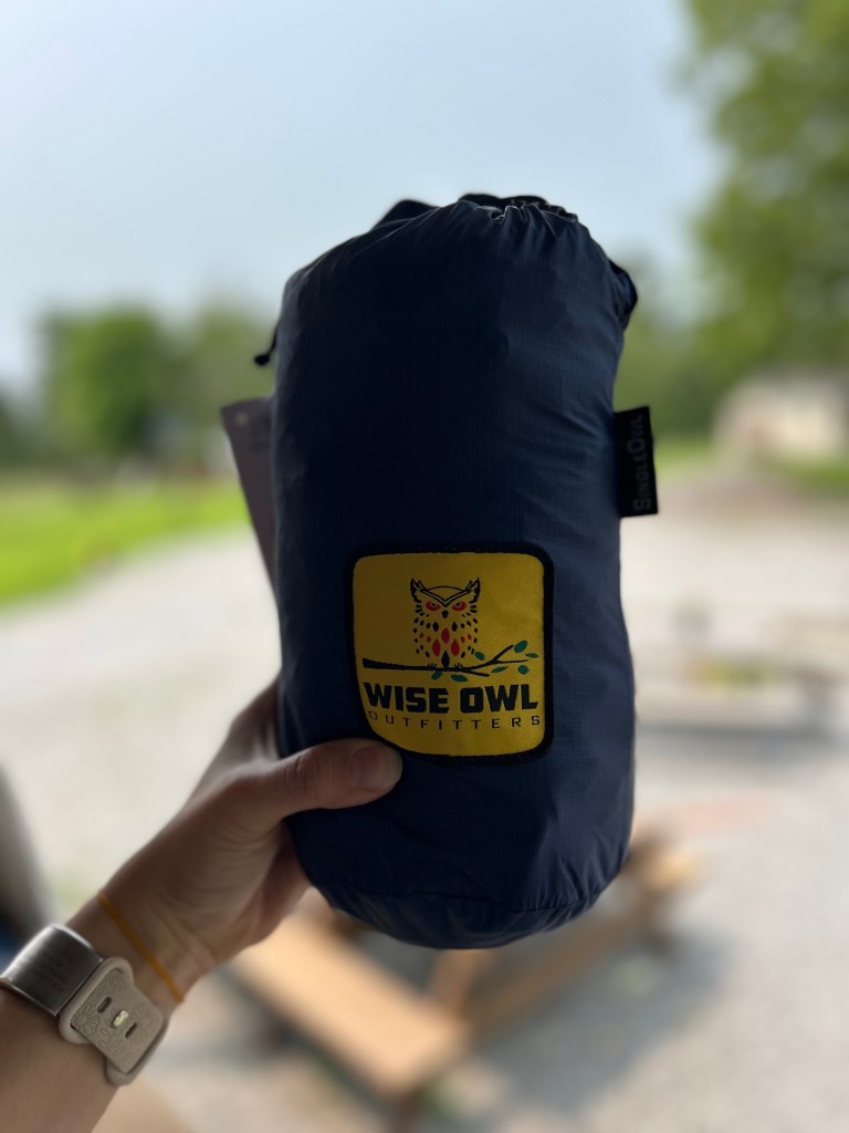 Hammocks are a big deal at our house! We have an area in the back yard where we can hang hammocks in the shade and read, snack, or rest. Sometimes we’ll take them to the beach, and in the past we’ve taken them camping too (I think it’s time we plan a camping trip….it’s been a while!) I recently came across a hammock that also functions as a tarp, a small tent, and a poncho! (How cool is that?). Wise Owl was so nice to send us one to test and review. We couldn’t wait to check it out!